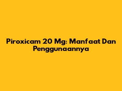 Piroxicam 20 Mg: Manfaat Dan Penggunaannya