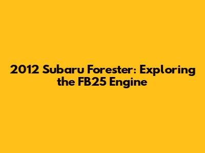 Hey guys! Today, we're diving deep into the heart of the 2012 Subaru Forester: the FB25 engine. If you're a Forester owner or just a car enthusiast, understanding your engine is super important. This article will cover everything you need to know about the FB25 engine in the 2012 Forester, from its specs and performance to common issues and maintenance tips. So, buckle up and let's get started!