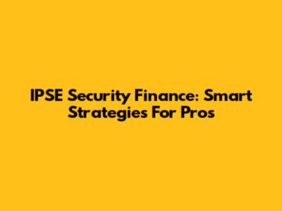 IPSE Security Finance: Smart Strategies For Pros