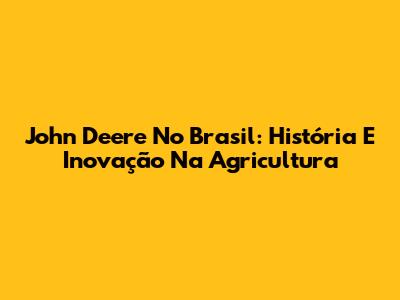 John Deere No Brasil: História E Inovação Na Agricultura