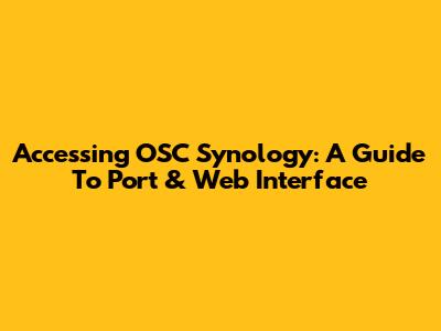 Accessing OSC Synology: A Guide To Port & Web Interface
