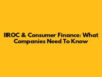 IIROC & Consumer Finance: What Companies Need To Know