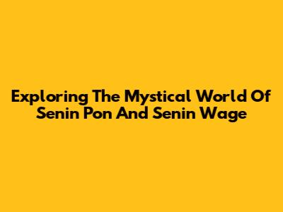 Exploring The Mystical World Of Senin Pon And Senin Wage