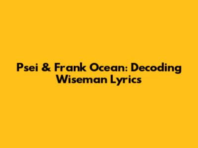 Psei & Frank Ocean: Decoding Wiseman Lyrics