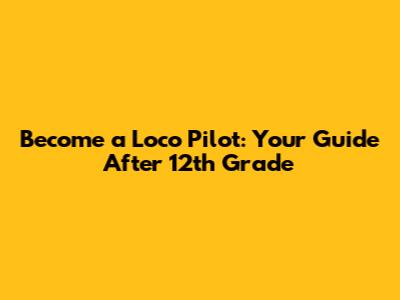 Become A Loco Pilot: Your Guide After 12th Grade