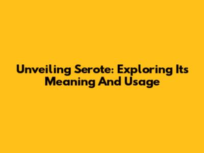 Unveiling 'Serote': Exploring Its Meaning And Usage