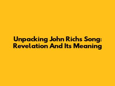 Unpacking John Rich's Song: Revelation And Its Meaning