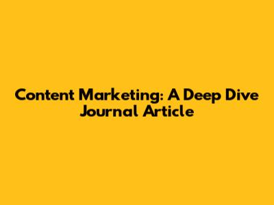 Content Marketing: A Deep Dive Journal Article