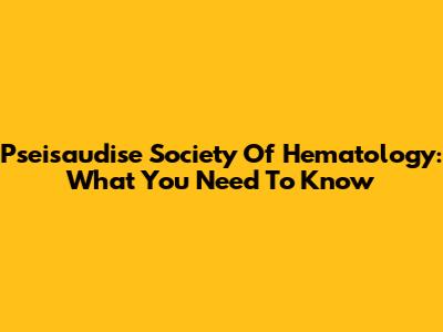 Pseisaudise Society Of Hematology: What You Need To Know