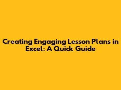 Create Engaging Lesson Plans In Excel: A Quick Guide