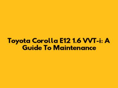 Toyota Corolla E12 1.6 VVT-i: A Guide To Maintenance