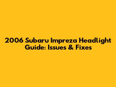 2006 Subaru Impreza Headlight Guide: Issues & Fixes