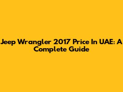 Jeep Wrangler 2017 Price In UAE: A Complete Guide