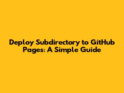 Deploy Subdirectory To GitHub Pages: A Simple Guide