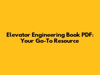 Elevator Engineering Book PDF: Your Go-To Resource