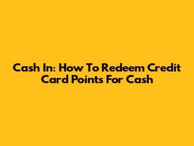 Cash In: How To Redeem Credit Card Points For Cash