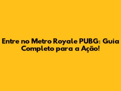 Entre No Metro Royale PUBG: Guia Completo Para A Ação!