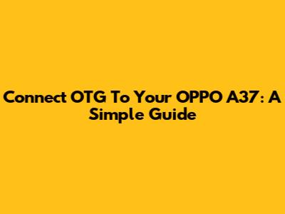 Connect OTG To Your OPPO A37: A Simple Guide