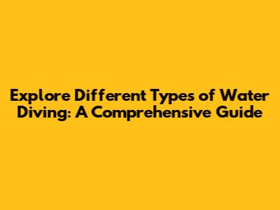 Explore Different Types Of Water Diving: A Comprehensive Guide