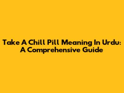 Take A Chill Pill Meaning In Urdu: A Comprehensive Guide