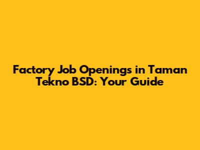 Hey guys! Looking for a job in the bustling industrial area of Taman Tekno BSD? You're in luck! This guide is designed to help you navigate the factory job openings scene, providing you with all the info you need to land your dream job. We'll dive into what Taman Tekno BSD offers, the types of factories you can find there, and how to snag those coveted positions. So, buckle up, because we're about to embark on a job-hunting adventure!