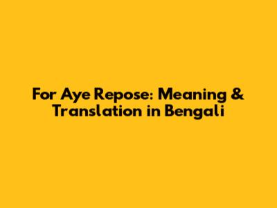 Hey guys! Let's dive into the phrase "for aye repose" and figure out what it means, especially when we're trying to understand it in Bengali. This might sound like some old-school English, and that's because it is! We're going to break it down so it's super clear and easy to understand. So, let’s get started!