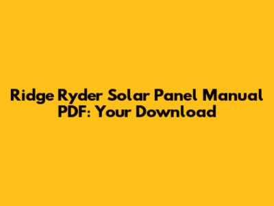 Ridge Ryder Solar Panel Manual PDF: Your Download