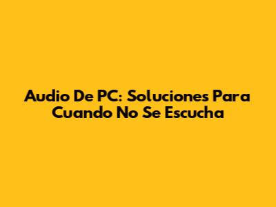 Audio De PC: Soluciones Para Cuando No Se Escucha
