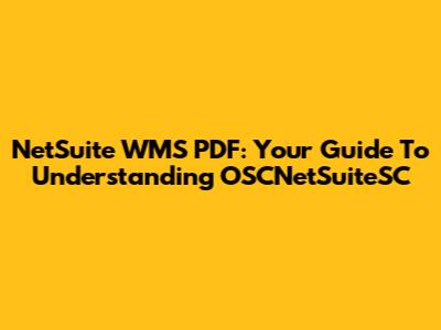 NetSuite WMS PDF: Your Guide To Understanding OSCNetSuiteSC