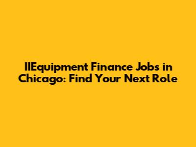 IIEquipment Finance Jobs In Chicago: Find Your Next Role