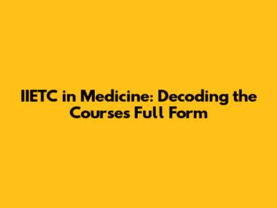 IIETC In Medicine: Decoding The Course's Full Form