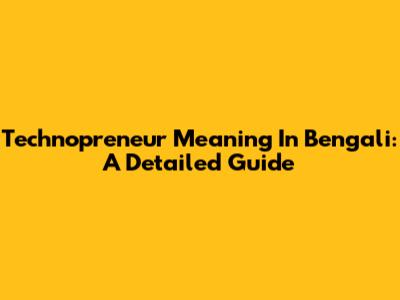 Technopreneur Meaning In Bengali: A Detailed Guide