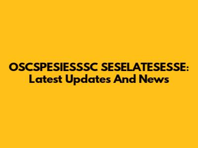 OSCSPESIESSSC SESELATESESSE: Latest Updates And News