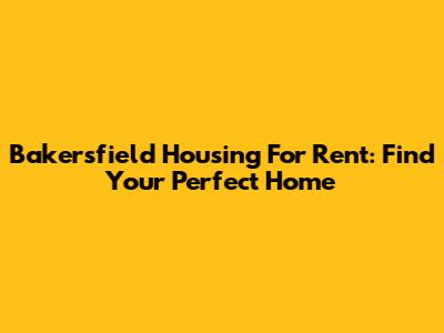 Bakersfield Housing For Rent: Find Your Perfect Home