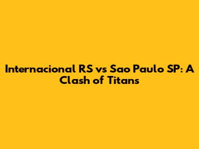 Hey guys, buckle up! We're diving deep into a classic Brazilian football showdown: Internacional RS vs. São Paulo SP. This isn't just any match; it's a battle of titans, a clash of styles, and a test of wills. For fans of Brazilian Serie A, this is a must-watch, filled with passion, skill, and the unpredictable drama that makes football the beautiful game. I'm going to break down everything you need to know, from team form to key players, stats, and even a few predictions to get you ready for the game. Let's get started!