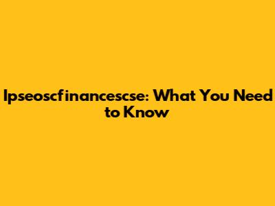 Alright, let's dive into what you need to know about Ipseoscfinancescse. This might sound like a jumble of letters and abbreviations at first, but we're going to break it down piece by piece so you can understand what it's all about. Whether you're an investor, a student, or just someone curious about the financial world, this guide is for you. We'll cover the basics, the key aspects, and why it's relevant in today's financial landscape.