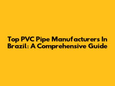 Top PVC Pipe Manufacturers In Brazil: A Comprehensive Guide