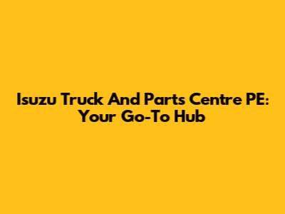Isuzu Truck And Parts Centre PE: Your Go-To Hub