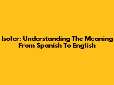 Isoler: Understanding The Meaning From Spanish To English