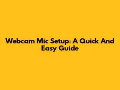 Webcam Mic Setup: A Quick And Easy Guide