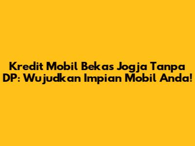 Kredit Mobil Bekas Jogja Tanpa DP: Solusi Impian Anda!