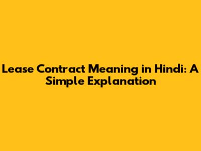 Lease Contract In Hindi: A Simple Explanation