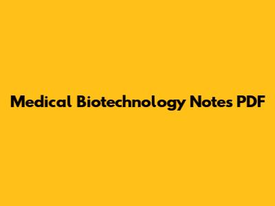 Medical Biotechnology Notes PDF