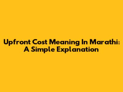 Upfront Cost Meaning In Marathi: A Simple Explanation