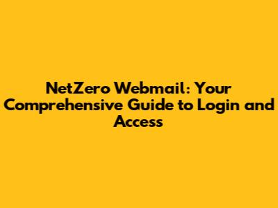 NetZero Webmail: Access, Login, And Troubleshooting Guide
