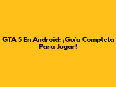 GTA 5 En Android: ¡Guía Completa Para Jugar!