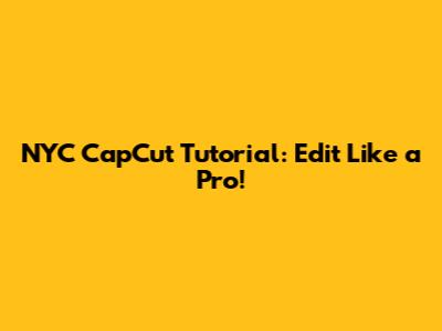 NYC CapCut Tutorial: Edit Like A Pro!