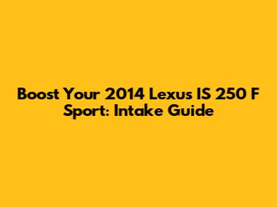 Boost Your 2014 Lexus IS 250 F Sport: Intake Guide