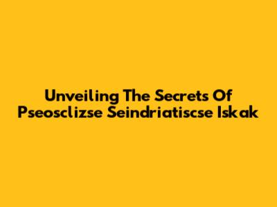 Unveiling The Secrets Of Pseosclizse Seindriatiscse Iskak
