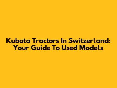 Kubota Tractors In Switzerland: Your Guide To Used Models